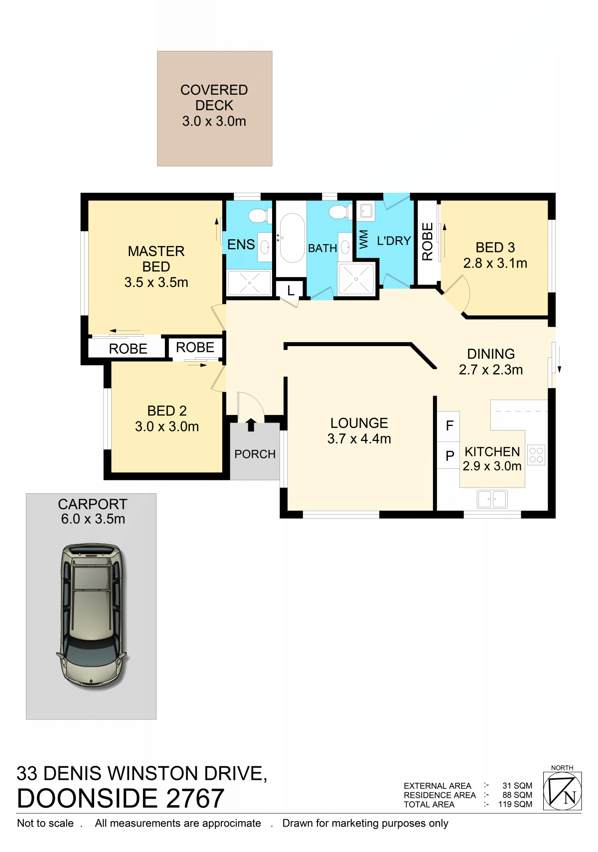 Alarm system, fencing at the front yard and electric gate, security doors, flyscreens to windows.