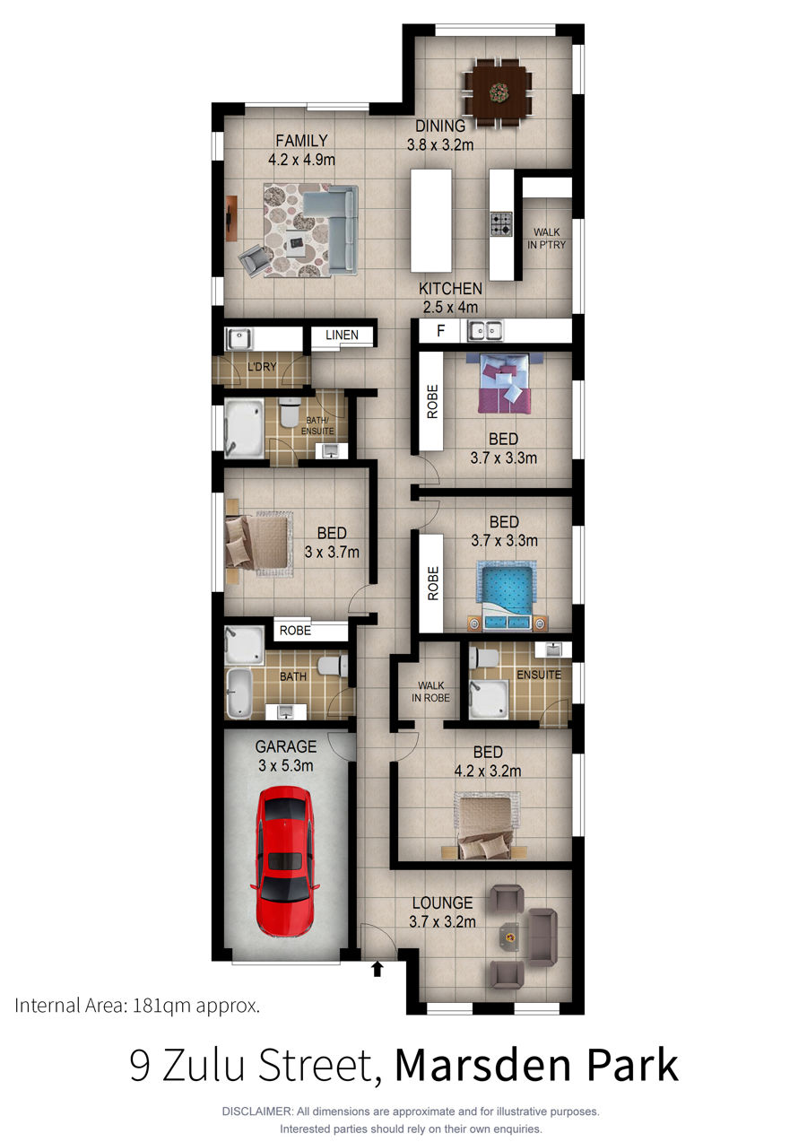 A quiet and convenient setting adds the final touches to this stunning package that's only a few minutes to amenities at Elara Village Shopping Centre in Marsden Park, local schools, including St Lukes Catholic College, daycare facilities and neighbourhood parks. Located at the centre of Sydney's North West growth corridor, 9 Zulu Street is also within a short drive to train stations at both Schofields and Riverstone, and enjoys close proximity to the M7 and M4 motorways.