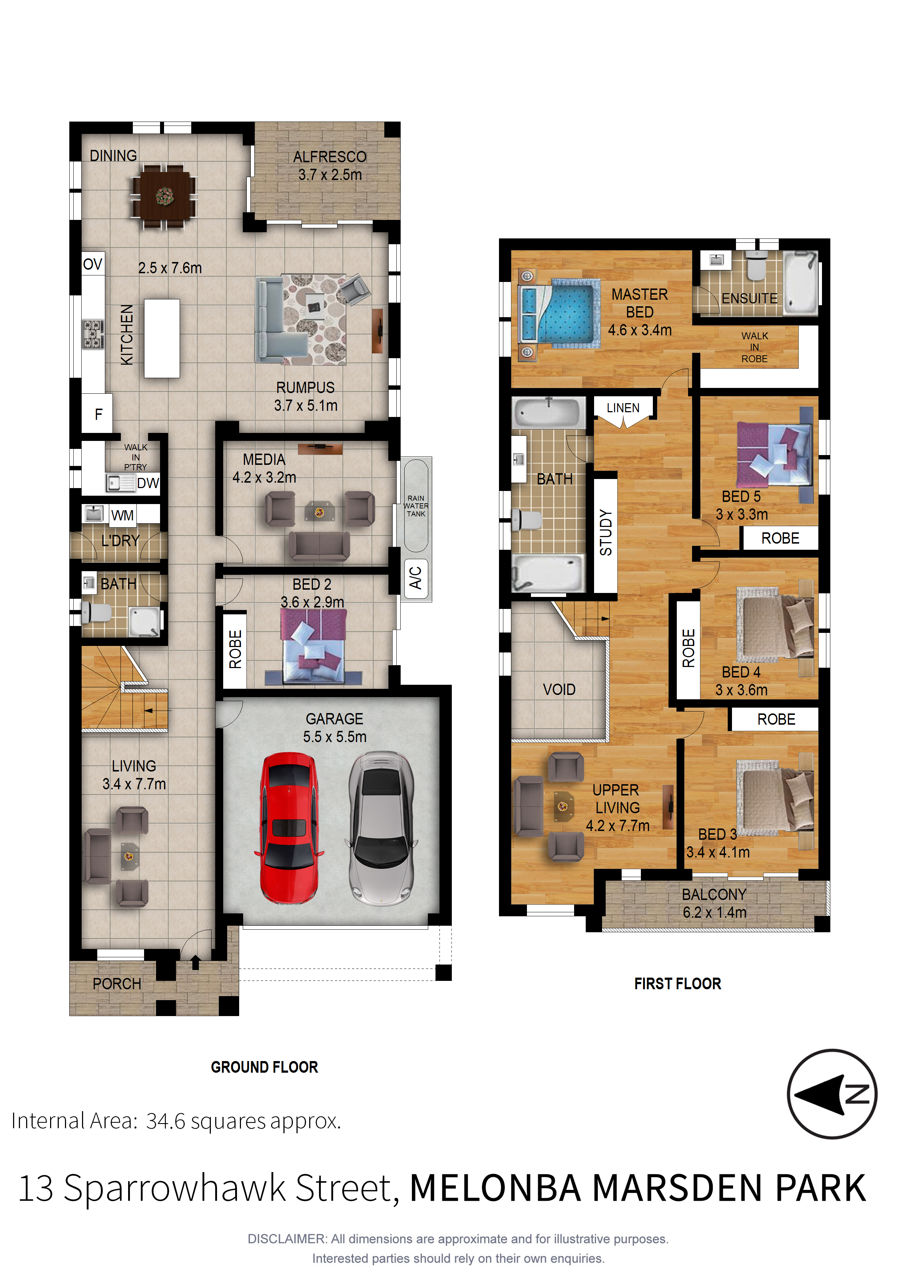 - Separate formal lounge, media room and guest bedroom on the ground floor