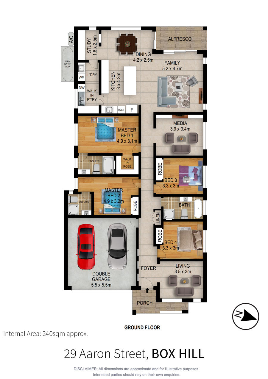 • Ducted air-conditioning, ceiling fans and a deluxe master bathroom
