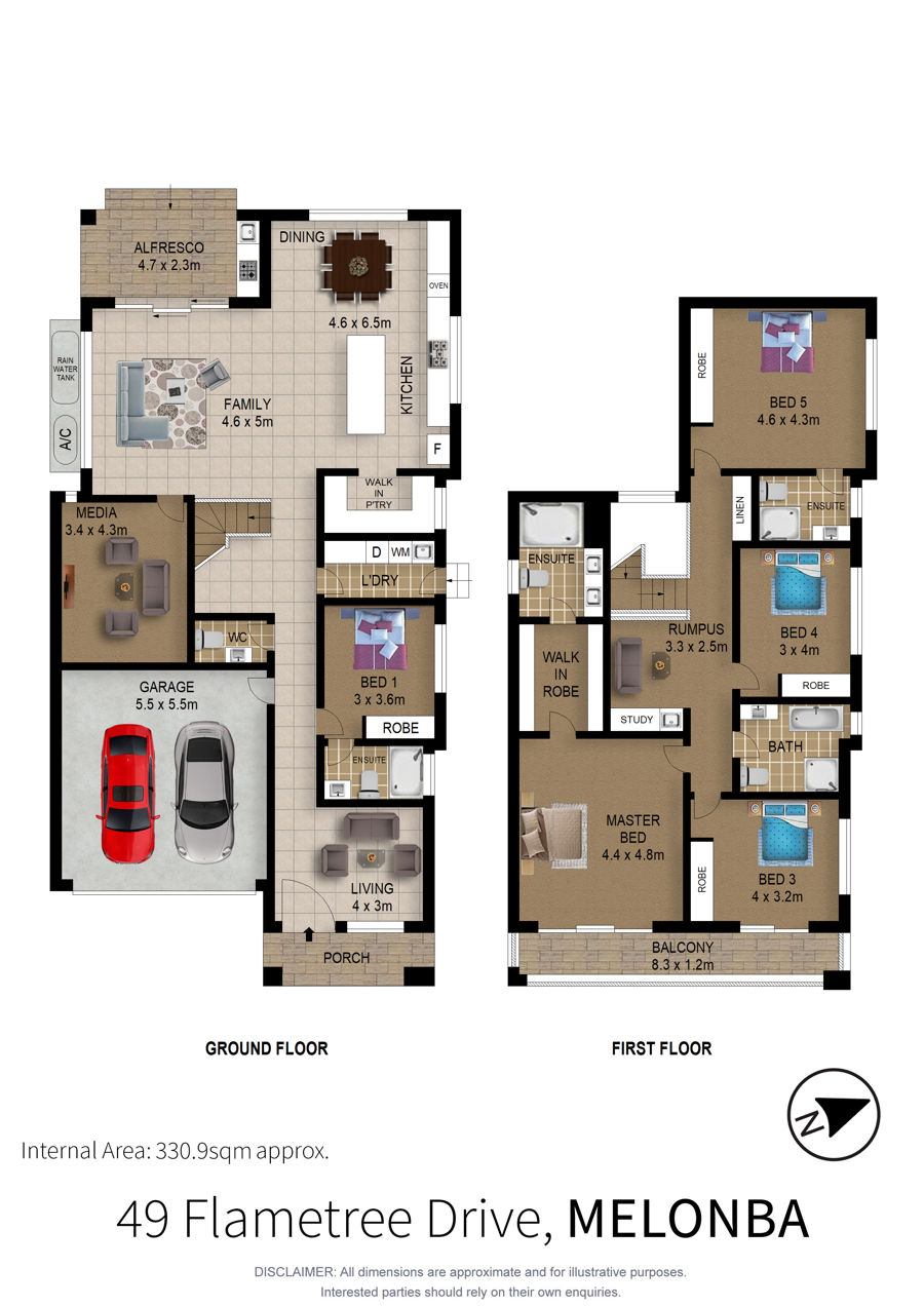- Separate formal lounge, media room plus an upstairs rumpus area