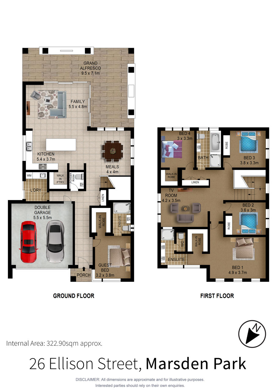- 5 bedrooms, 3 bathrooms, powder room and a double lock-up garage