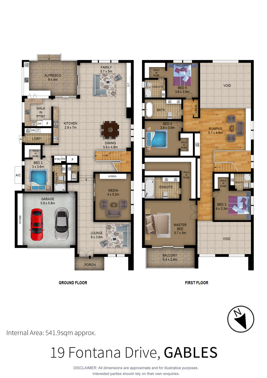 - 5 x master bedrooms with walk-in robes and ensuites