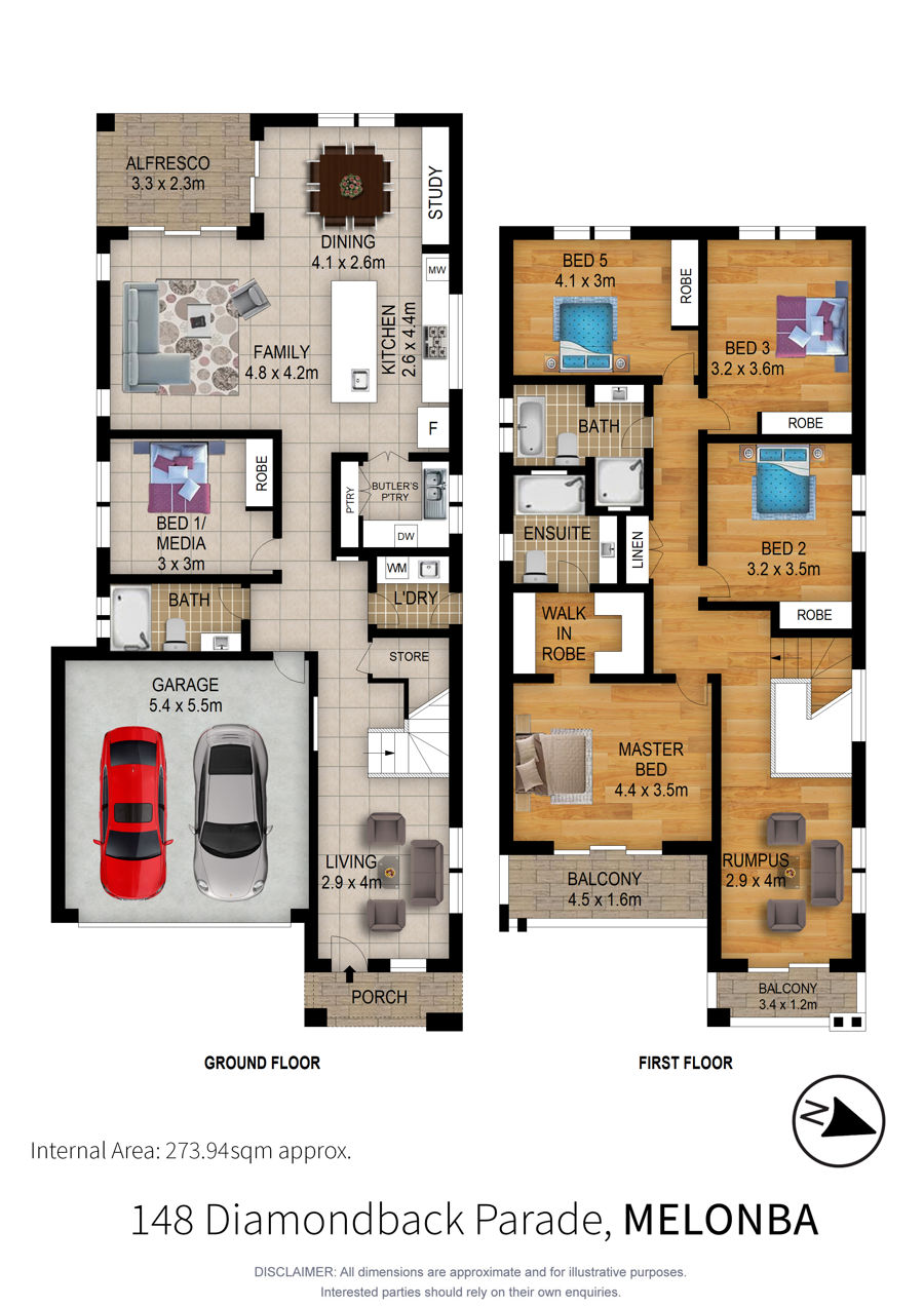- Five bedrooms, the upstairs master has a WIR, ensuite and private balcony.